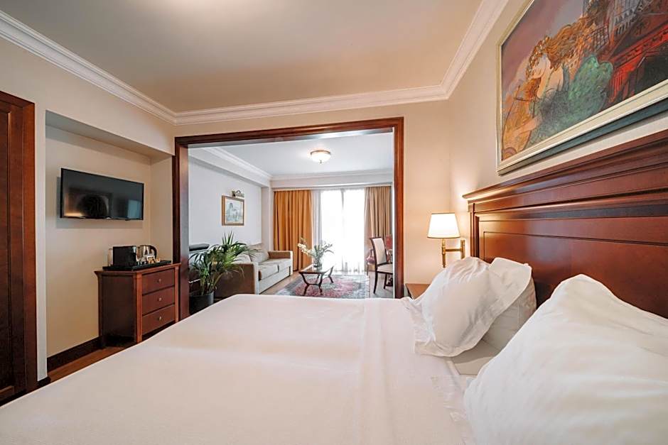 Suites offer separate living room, balcony with view of the Acropolis.